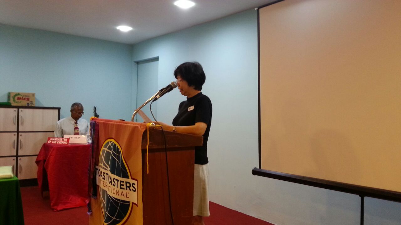 The last meeting for the 2014/2015 term. Our outgoing President, TM Indra R ACB,ALB reviewing her term with great pride. She mentioned about the contributions of all the exco and members to bring the club to another successful year. She also advise our newer members to take up leadership roles to have a deeper understanding of the spirit of Toastmasters.